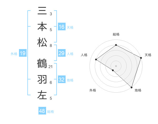 三本松 鶴羽左さんを姓名の画数から五運を鑑定