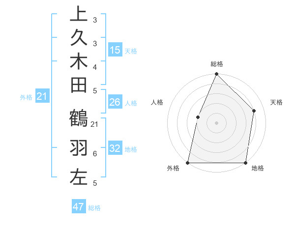 上久木田 鶴羽左さんを姓名の画数から五運を鑑定