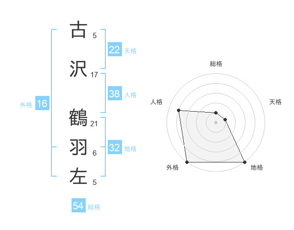 古沢 鶴羽左さんを姓名の画数から五運を鑑定