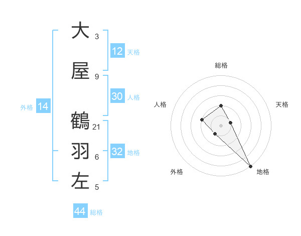 大屋 鶴羽左さんを姓名の画数から五運を鑑定
