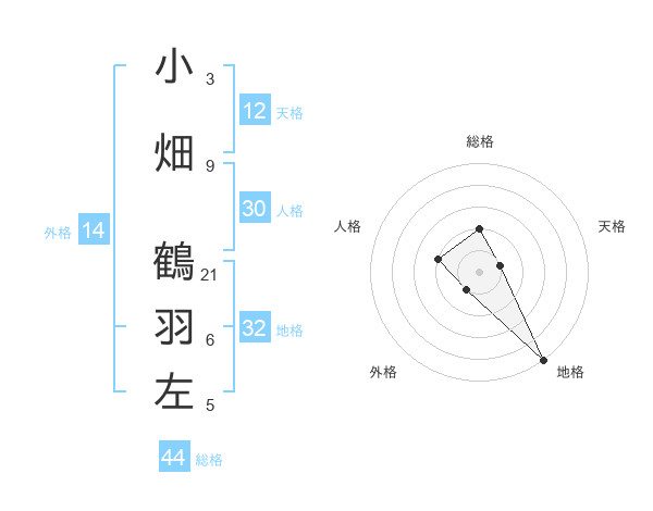 小畑 鶴羽左さんの総格は44画の2点!