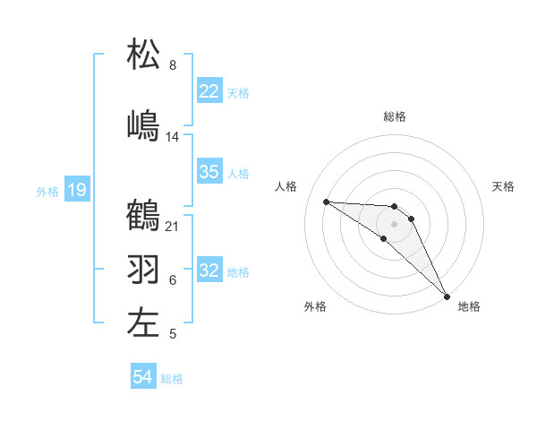 松嶋 鶴羽左さんを姓名の画数から五運を鑑定