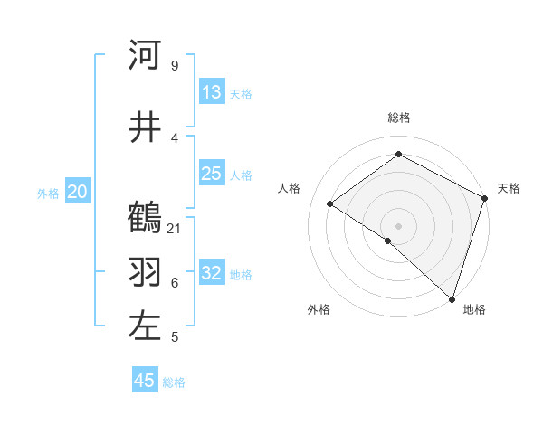 河井 鶴羽左さんを姓名の画数から五運を鑑定