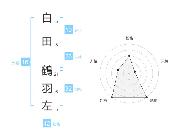 白田 鶴羽左さんを姓名の画数から五運を鑑定