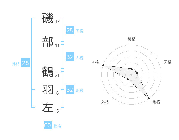 磯部 鶴羽左さんを姓名の画数から五運を鑑定