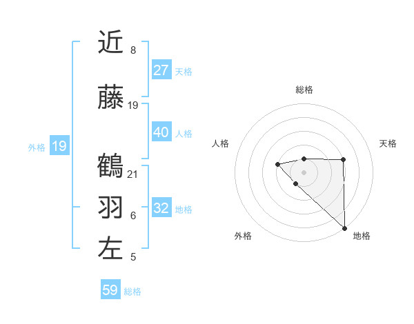 近藤 鶴羽左さんの総格は59画の1点