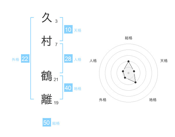 久村 鶴離さんの総格は50画の2点!