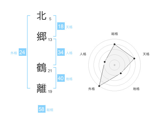 北郷 鶴離さんの外格は24画の5点!