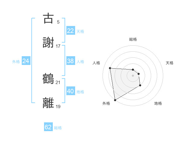 古謝 鶴離さんを姓名の画数から五運を鑑定