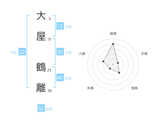 大屋 鶴離さんを姓名の画数から五運を鑑定