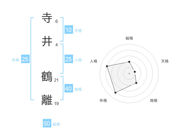 寺井 鶴離さんの総格は50画の2点!
