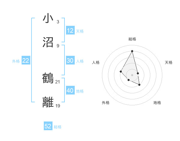 小沼 鶴離さんを姓名の画数から五運を鑑定