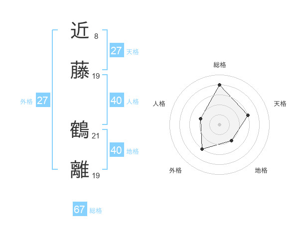 近藤 鶴離さんを姓名の画数から五運を鑑定