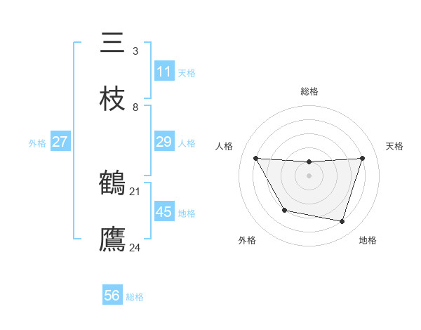 三枝 鶴鷹さんを姓名の画数から五運を鑑定