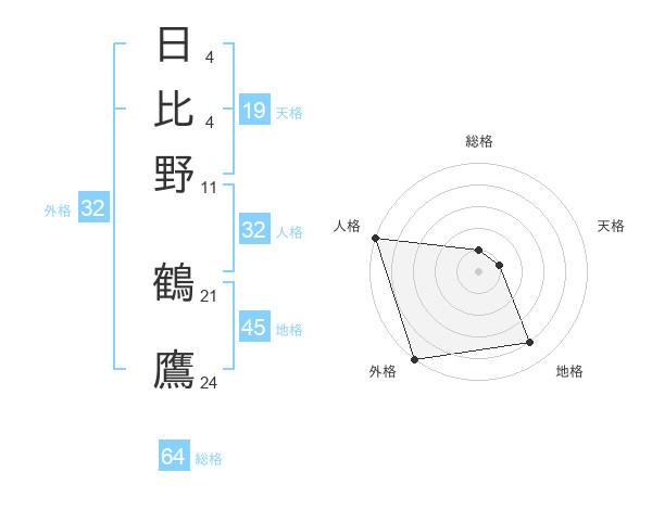 日比野 鶴鷹さんの外格は32画の5点!