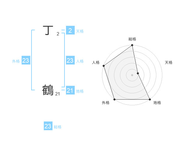 丁 鶴さんの総格は23画の5点!