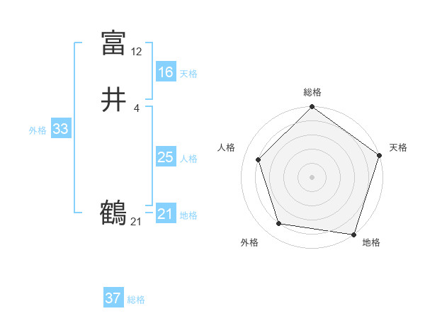 富井 鶴さんの総格は37画の5点!