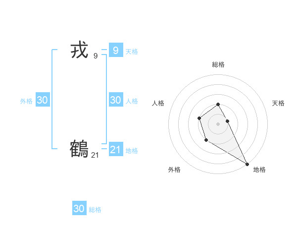 戎 鶴さんの総格は30画の2点!