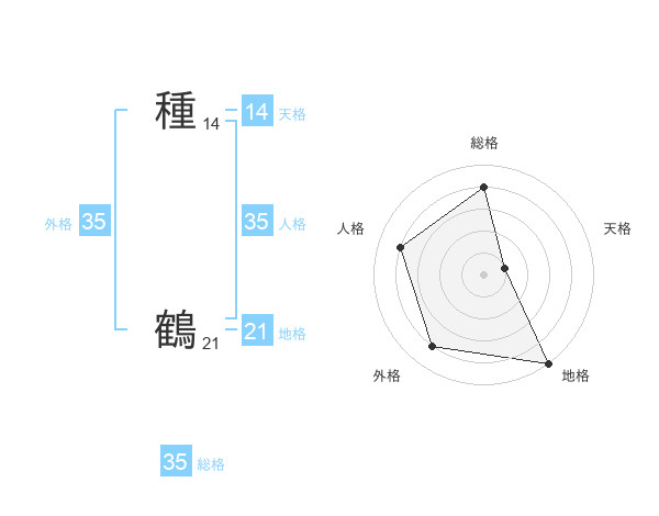 種 鶴さんの総格は35画の4点!