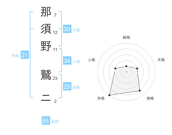 那須野 鷲ニさんの総格は55画の1点