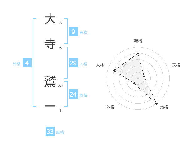 大寺 鷲一さんを姓名の画数から五運を鑑定