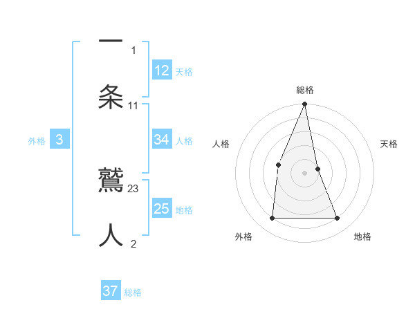 一条 鷲人さんを姓名の画数から五運を鑑定