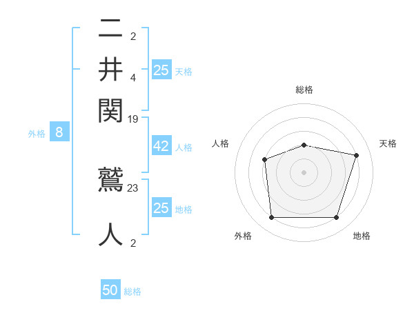 二井関 鷲人さんを姓名の画数から五運を鑑定