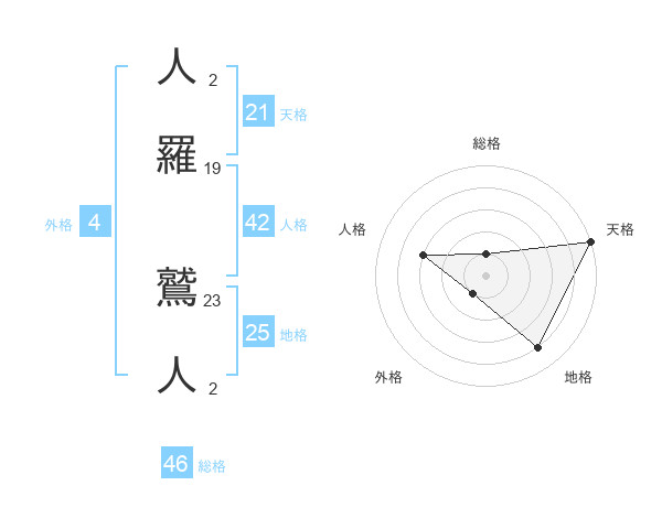 人羅 鷲人さんの天格は21画の5点!