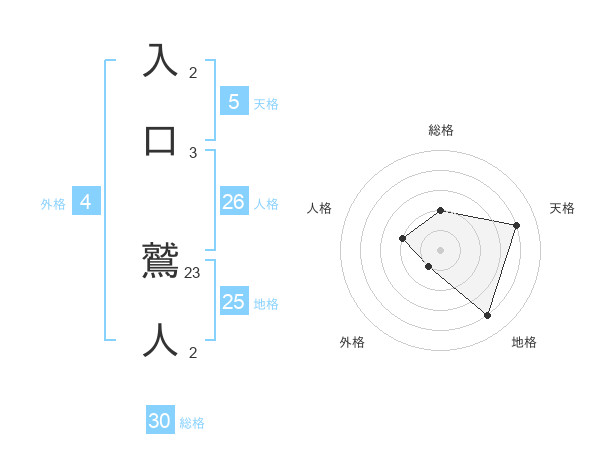 入口 鷲人さんの総格は30画の2点!