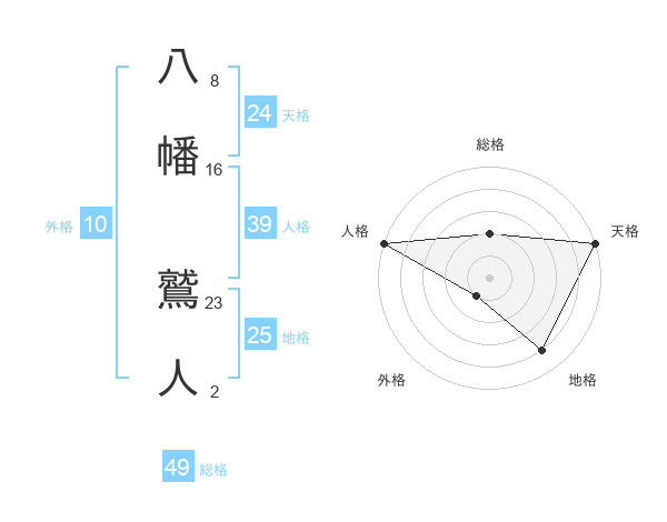 八幡 鷲人さんを姓名の画数から五運を鑑定