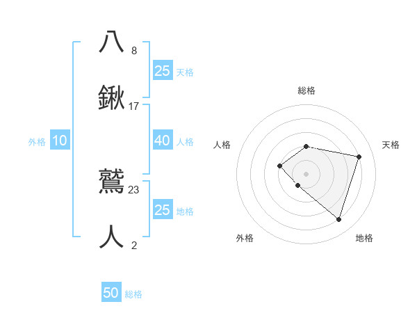 八鍬 鷲人さんの天格は25画の4点!