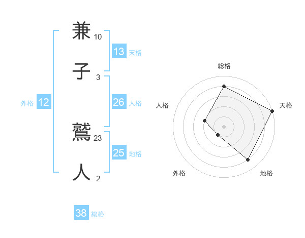 兼子 鷲人さんを姓名の画数から五運を鑑定