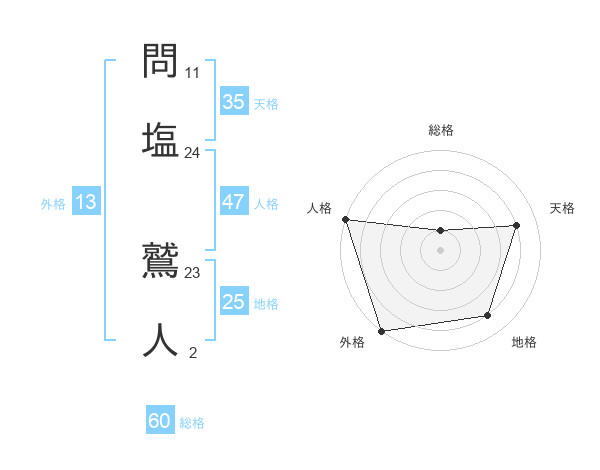 問塩 鷲人さんを姓名の画数から五運を鑑定