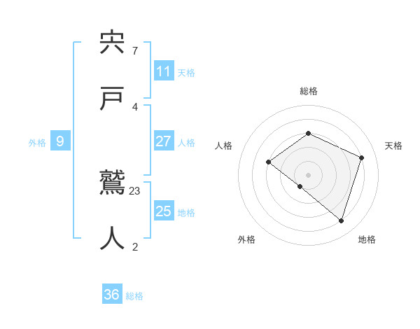 宍戸 鷲人さんを姓名の画数から五運を鑑定