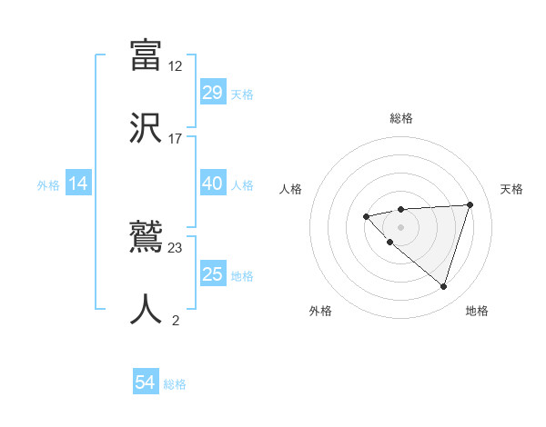 富沢 鷲人さんを姓名の画数から五運を鑑定