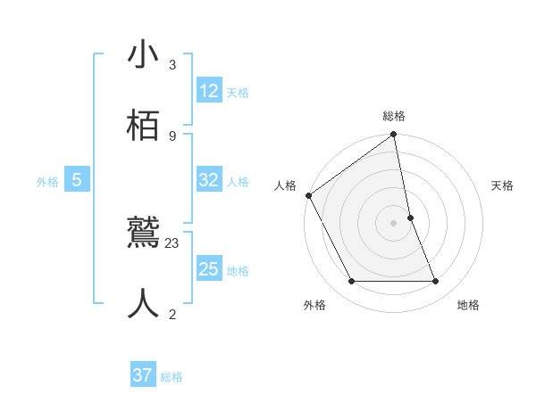 小栢 鷲人さんの総格は37画の5点!
