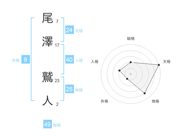 尾澤 鷲人さんを姓名の画数から五運を鑑定