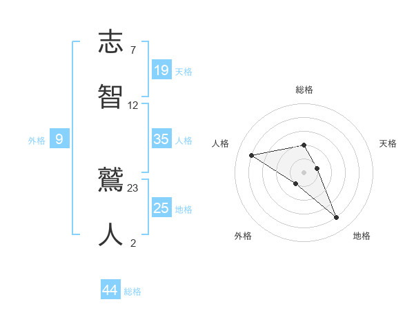 志智 鷲人さんの総格は44画の2点!