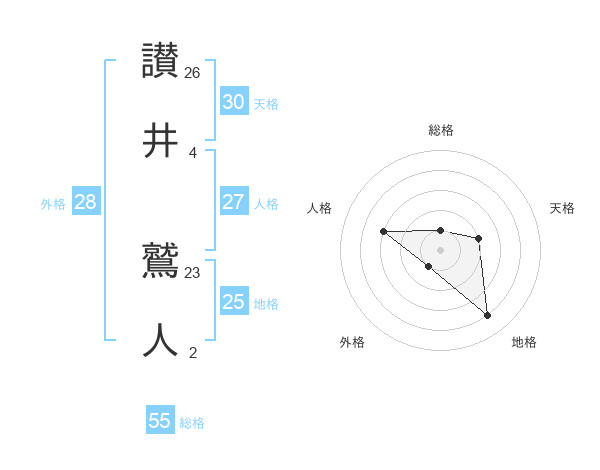 讃井 鷲人さんの天格は30画の2点!