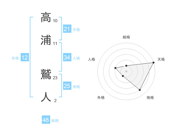 高浦 鷲人さんを姓名の画数から五運を鑑定