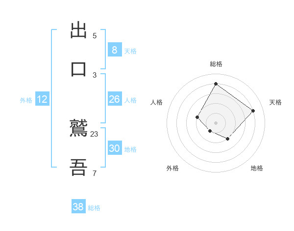 出口 鷲吾さんを姓名の画数から五運を鑑定
