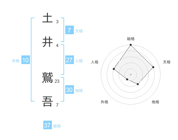 土井 鷲吾さんを姓名の画数から五運を鑑定