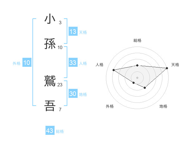小孫 鷲吾さんを姓名の画数から五運を鑑定