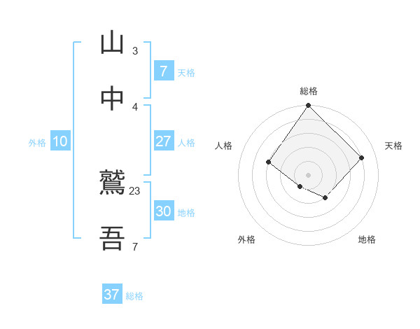 山中 鷲吾さんの総格は37画の5点!
