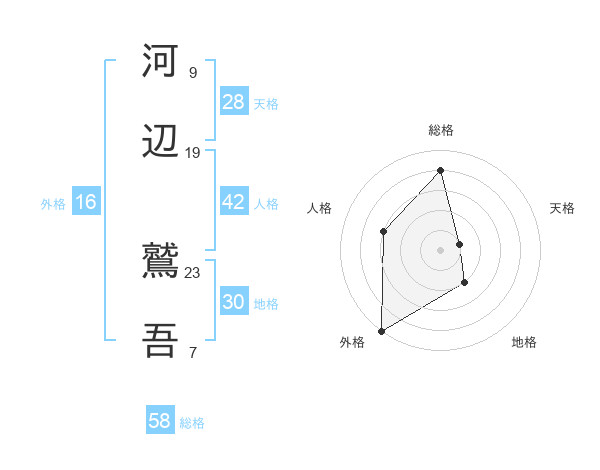 河辺 鷲吾さんを姓名の画数から五運を鑑定