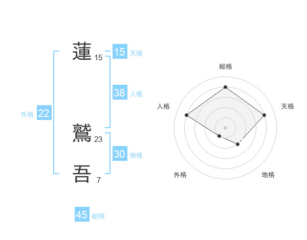 蓮 鷲吾さんの総格は45画の4点!