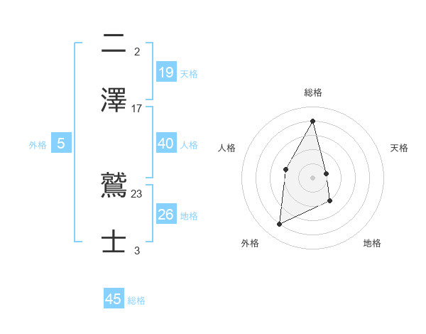 二澤 鷲士さんを姓名の画数から五運を鑑定