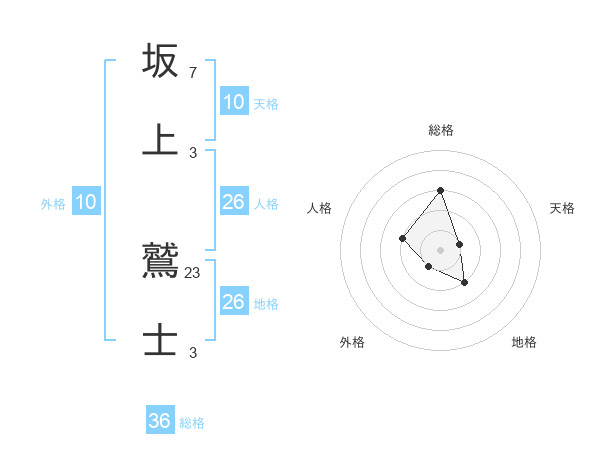 坂上 鷲士さんの地格は26画の2点!