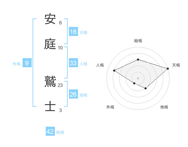 安庭 鷲士さんを姓名の画数から五運を鑑定