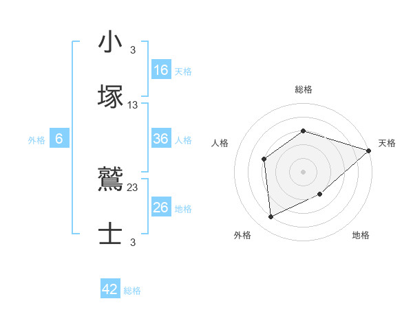 小塚 鷲士さんを姓名の画数から五運を鑑定